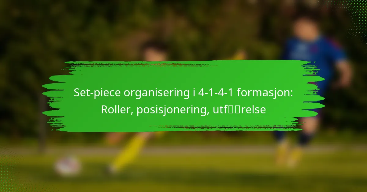 4-1-4-1-formasjonen krever en velstrukturert tilnærming til organisering av dødballer, der hver spillers rolle er avgjørende for både forsvar og angrep. Ved å posisjonere spillerne strategisk og utføre koordinerte bevegelser, kan lagene øke sjansene for å score samtidig som de minimerer sårbarheter. Å forstå disse dynamikkene er essensielt for effektiv utførelse av dødballer.
